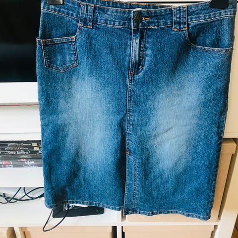 Fransa cowboynederdel med knapper ned foran. Længde omkring knæet.
