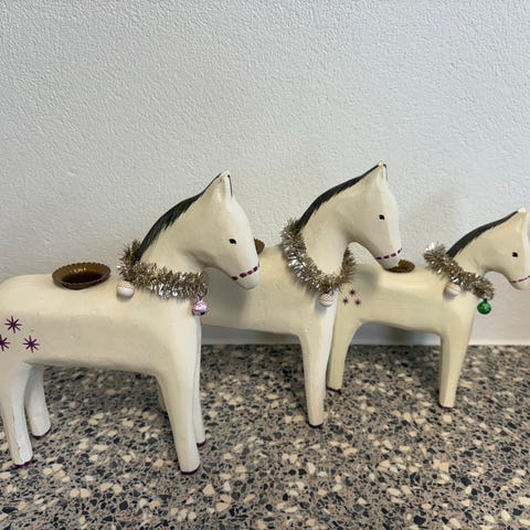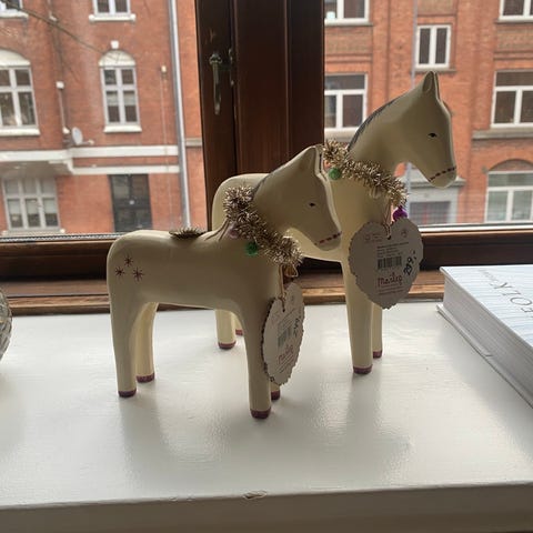 Super flot gyngehest i de gamle rødlige farver, som Maileg Jul. Den er ca. 24-25 cm høj.