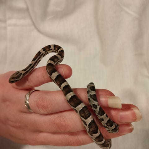 2 lyserøde unger der skifter ham uden problemer, de spiser okay og er meget håndterlige. Kornsnog er en god begynder slange da de kræver mindre specifik pleje end andre slange arter. De specifikke morpher er ikke noget jeg har forstand på men forældrenes morph har jeg fra deres adler så i kan få at vide hvilke gener der arbejdes med skulle det interessere