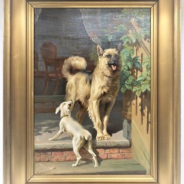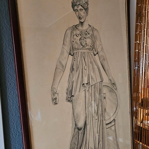 Tegning, Adolf Mackeprang, motiv: 2 heste, b: 34 h: 28, Tegning i flot brun ramme. Original.
