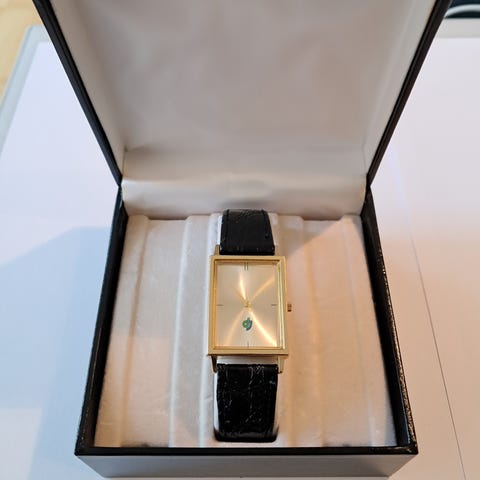 Unisexur, andet mærke, Philippe pechard ur made in Denmark. Ur fra 1991 med gammel Girobank reklame. Med rem af krokodillelaeder. Der skal nyt batteri i.