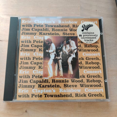 Eric Clapton Rainbow Concert CD. Indeholder liveoptagelser fra Rainbow Theatre. Trackliste inkluderer 'Badge', 'Roll It Over', 'Presence of the Lord', 'Pearly Queen', 'After Midnight' og 'Little Wing'. Velegnet til fans af rockmusik og livekoncerter.