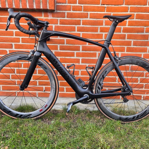 Eksklusiv S-Works Carbon str. 52 som vejer 7,7 kg med nye Zipp-hjul, store pulleyhjul der giver ekstra let tråd op ad bakkerne, samt præcist og lynhurtigt elektronisk gearskift.