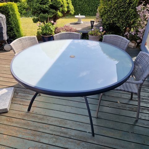 Rundt havebord i pulverlakeret sort jern,ben i aluminium.