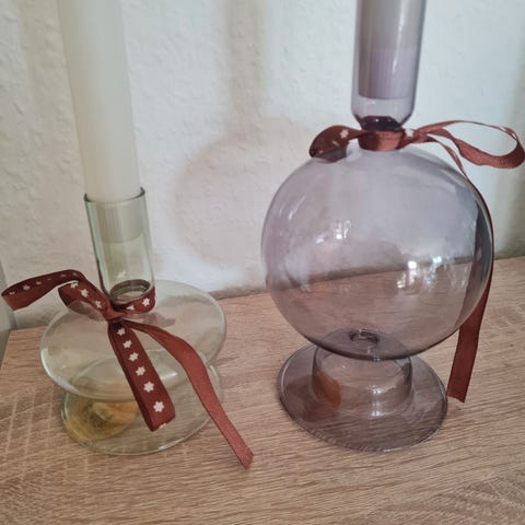 2 stk glas DM: 6 cm, H: 10,5 cm
