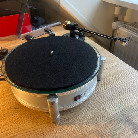 Er i superfin stand medfølgende pladebørste samt plade-vægt/puk