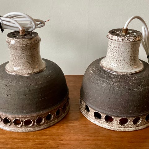 Søgeord: keramikpendel / pendel / pendler / par / sæt / to ens / lampe / loftslampe / loftlampe / keramiklampe / lanterne / keramiklanterne / retro / mid century / retrokeramik / retropendel / retropendler / retrolampe / stentøj / stentøjspendler / stentøjspendel / stentøjslampe / hyggelys / belysning / naturlig / materiale / tilbehør til bolig /