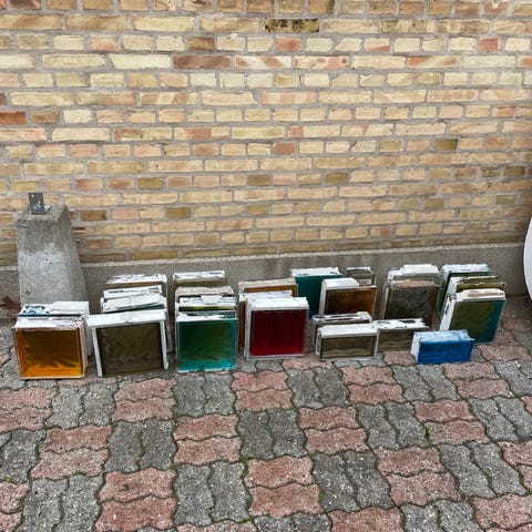 7 stk nye og ubrugte glas sten 190 mm x 190 mm x 80 mm.