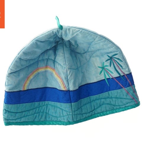 Flot tehætte i patchwork. Håndarbejde - købt i kunsthåndværk-butik i 80-erne. Den er lavet med en aftagelig isoleret inder-pose så den kan vaskes separat. Holder godt på varmen. Er passet meget på så fremstår uden nogen form for slid. Læg mærke til sengetæppet og puder i samme design. Som sælges i separat annonce. Prisen er FAST