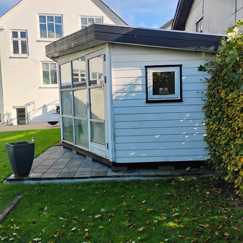 Der kan flyttes på en lastbil med kran, huset kan deles i to.