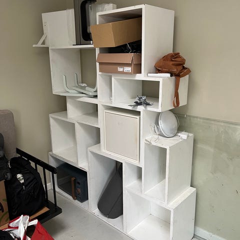 Hvid reol i træ med flere hylder og fast bagbeklædning. Velegnet til opbevaring af bøger, dekorationer eller andre genstande. Reolen har en neutral hvid farve, der passer ind i de fleste rumindretninger. Solid konstruktion sikrer holdbarhed og i pæn stand.