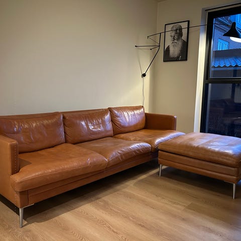 Flot og velholdt Mogens Hansen lædersofa i bredden 210 cm.