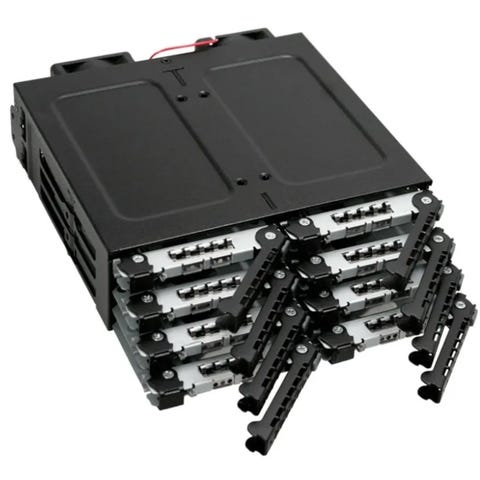 Omdanner 3 x 5 1/4" bays til 4 x Harddisk hotswap skuffer.