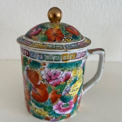 Smuk lille orientalsk lågkrukke/ løgkrukke i keramik med "sølv" belægning...