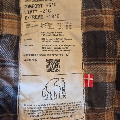 200 x 75 cm lynet sammen og 200 x 150 cm lynet op som tæppe.