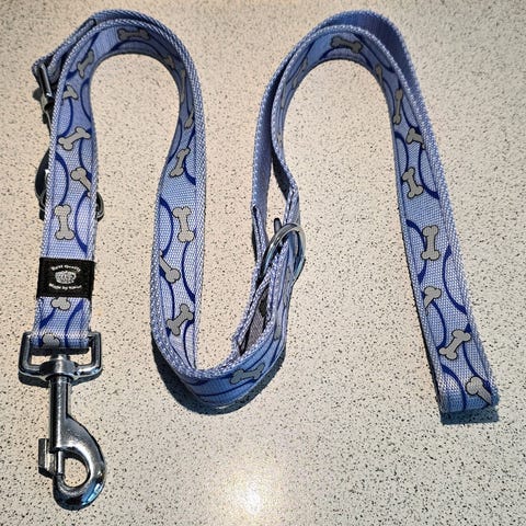 Red Dingo dressurline / hundesnor lyseblå med "reflekskødben" ca 2 m / 200 cm 2 cm bred passer til hund på 10-20 kg.