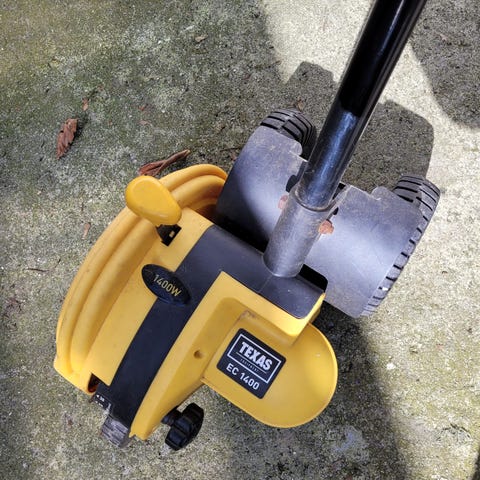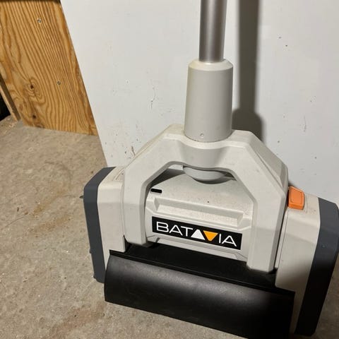 Byd byd byd Fin el kost 220v med stik rigtig god til grundigt fejning fliser tager også småt ukrudt mellem fliser og mos på fliser virker også rigtig godt sammen med alger fjerner på fliser og træ er nem og håndtere og kan nemt skilles af for rengøring og skidt samt den ligger godt i hånden når der arbejdes med dette formidabel stykke værktøj der gør alt arbejdet nemt med fejning og rensning af træ og fliser .
