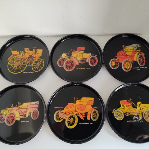 Gammel nøglebræt med motiver af veteranbiler i pæn stand og fra ikke ryger hjem sælges og den kan sendes for 47 kr