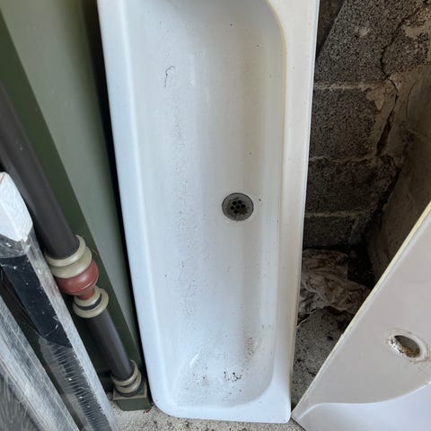 Porcelænshåndvask str. 85 x 50. Har slået flig af hjørne, men fungerer som den skal.