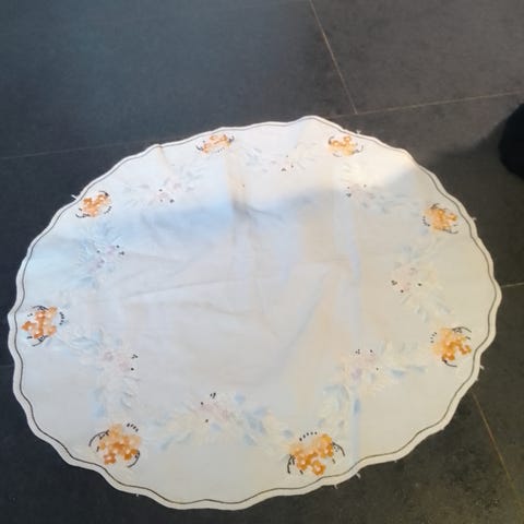 Vintage rund broderet dug. Dia. 60 cm
