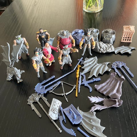 En god samling fantasy-inspirede figurer, inklusiv en brølende drage.