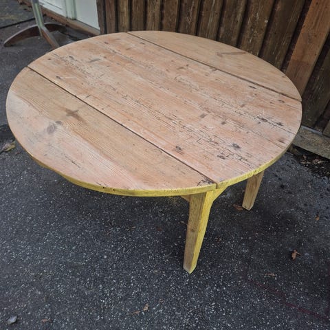 Lækker retro rundt sofabord i massiv fyrretræ . Fremstår i pæn stand. Evt kan lev aftales.