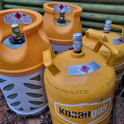 De er i god stand og klar til ombytning ved de fleste forhandlere. Perfekt til grill, varmeovne, camping eller båd.