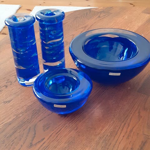 Fem stk. 2 blå måler 7 cm. I højde og sort måler 12 cm. I højde.