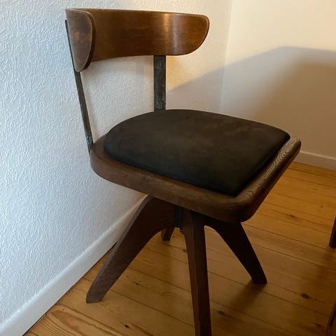 Farfars gamle, flotte skrivebordsstol sælges grundet pladsmangel.
