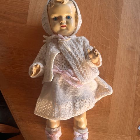 Dukker, DCI dukke 41, Gammel DCI dukke 41 i meget fin stand med det oprindelige hjerte DCI vedhæng. Dukken er mærket i nakken og på ryggen med DCI, der står for Dansk Celluloid industri. Faste øjne, mangler lidt af vipperne.