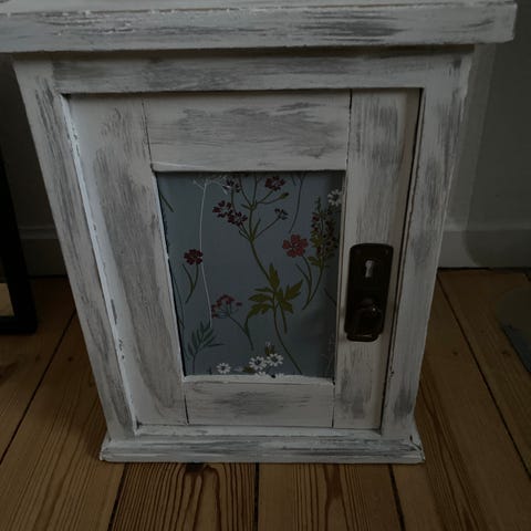 Andet skab, b: 55 d: 24 h: 43, Fint lille skab. Formentlig brugt til dukketøj. Men kan bruges til hvad man synes. Kun afhentning.