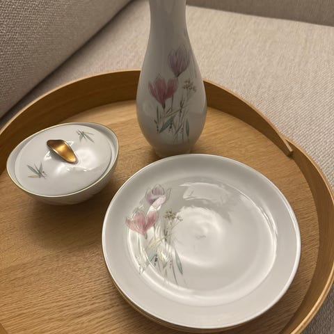 Fin gammel konfekt / kage porcelænskål, i Kgl. Porcelæn. Små blomster og bred guldkant foroven, mønsteret: "Strøblomst", forløberen for "Henriette". Måler: D: 17cm, H: 10cm.