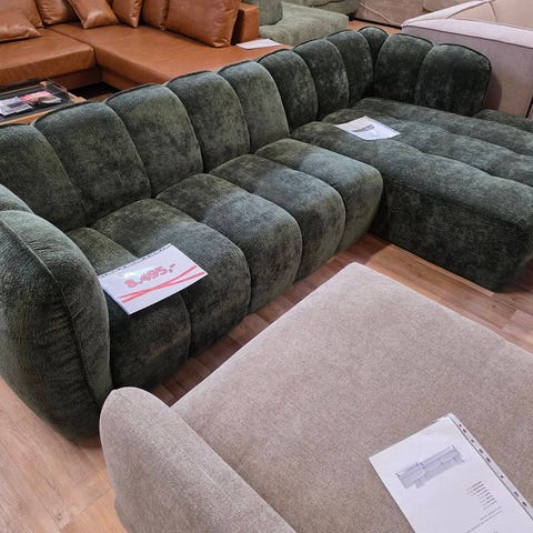 ▪ Længde – 298 cm, dybde – 206 cm (venstre) og 156 cm (højre), højde – 78 cm, sædehøjde – 44 cm, sædedybde – 50–60 cm, armlænsbredde – 30 cm, benhøjde – 5 cm. Liggemål – 241 × 126 cm.