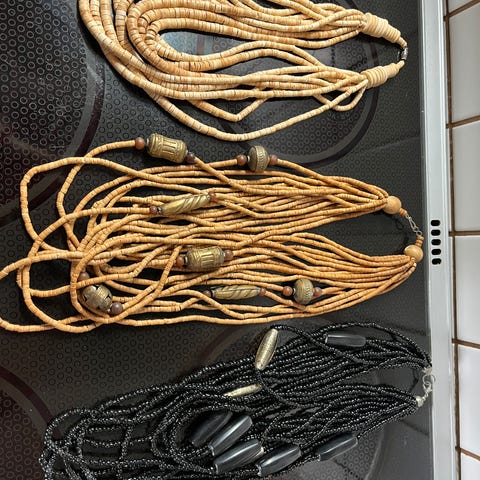 Halskæde, træ, Annoncen er ændret, Træet halskæde med blød flettet snor. Se ny annonce med samme nummer #00029