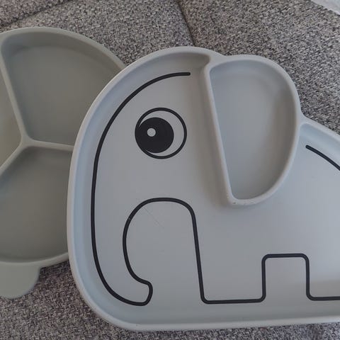 Done By Deer tallerkenen er lavet af silikone, og på undersiden har den en rund flade, som gør, at den sidder godt fast på bordpladen. På denne måde er det sværere for barnet at vælte den. Tallerkenen har også høje kanter, så den er lettere for barnet at bruge. Tallerkenen har også tre praktiske rum, så maden ikke blandes sammen.
