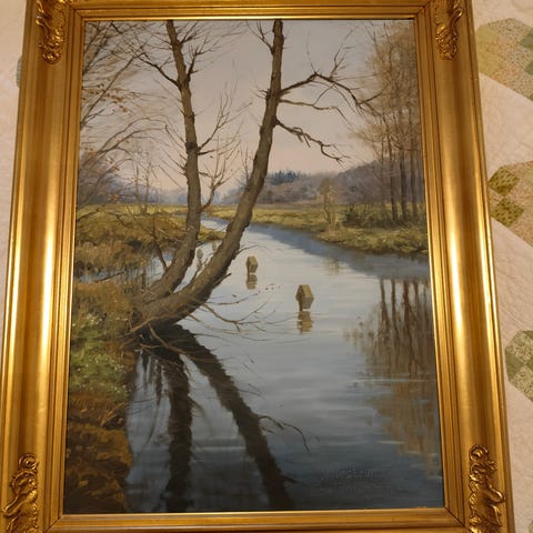 Oliemaleri, Weinreich, Emil Janus, motiv: Landskab, stil: Naturalistisk, b: 105 h: 80, NB! LAGER - PRISFALD
