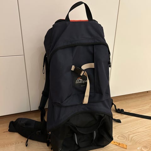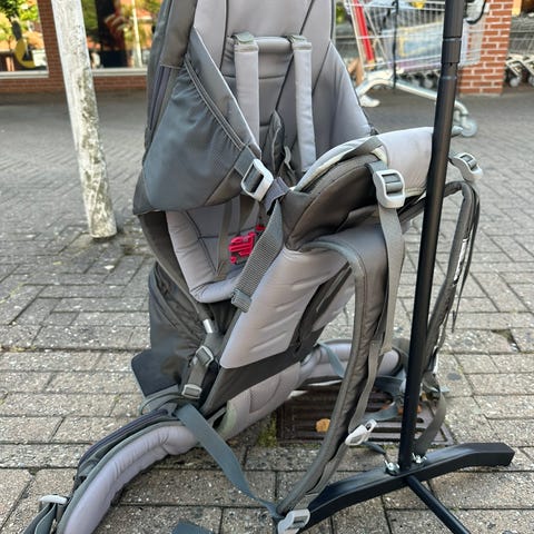 Bergans of Norway bærestol med en masse funktioner. Har været brugt på en enkelt byvandring, men vores barn var desværre allerede på det tidspunkt lige til den store side, så vi nåede ikke at bruge den mere.
