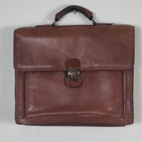 Mappe fra Tony Perotti i kraftigt, sort læder. Tre rum, heraf ét med lynlås. Foran lomme med lynlås og åben lomme. Mål: H:31 cm, L:42 cm, D:15 cm (bund). Tasken er i rigtig pæn stand med lidt brugsspor udvendigt, primært ved håndtaget og på kanterne i bunden. Indvendig som ny, og lugter stadig af nyt læder.