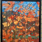 Ældre indretning samlinger samlerobjekter maleri oliemaleri billede med Blomster Oda Rise,målene er total mål