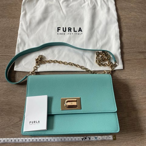 Den fedeste Furla taske. Gummi og læder. Læderdetaljerne kan afmonteres for et andet look. Nærmest ubrugt. Mål og andre detaljer er beskrevet i det sidste billede. Dustbag er desværre bortkommet. Se mine øvrige annoncer for mange spændende ting