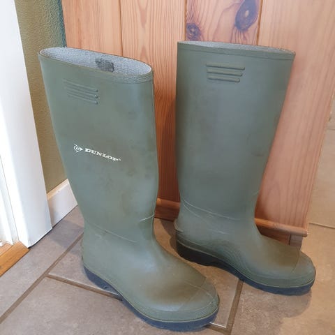 Dunlop Gummistøvler med højt skaft - vi er glade for den model og vi har haft støvlen i flere størrelser.