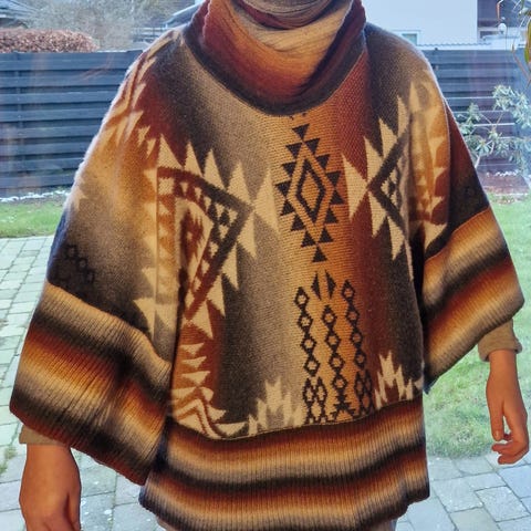 Poncho, str. One size, ukendt, Natur, Skind og pels, Skindslag/Poncho med rævekanter, hætte. Aldrig brugt.