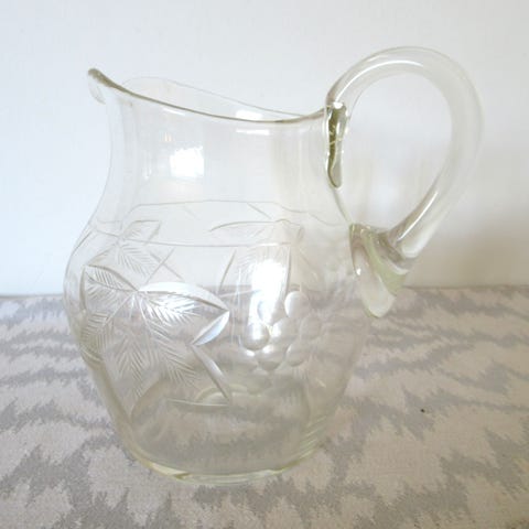 Glaskande med dekorativt mønster. Lavet af gennemsigtigt glas, ideel til servering af kolde drikke. Unikt design med snoet mønster rundt om kanden, hvilket giver et stilfuldt udseende. Perfekt til brug i hjemmet eller til særlige lejligheder. God til velkomst drinks eller til den store familie . alkohol blandet med diverse frugter skønt, Højde 24 cm diameter 15 cm