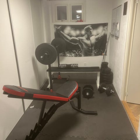 Helt nyt, kun samlet trænings multistation med tilhørende bænk. Kan bruges til dips, pull ups, mave og andet.