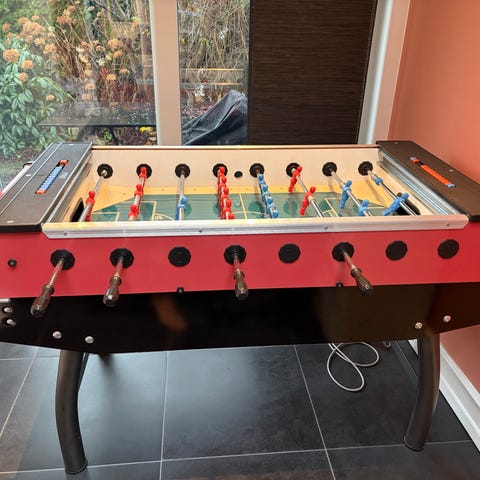 Bonzini bordfodbold, Modellen er med møntindkast som kan deaktiveres. Er fin stand alt virker der medfølger bolde og nøgle.