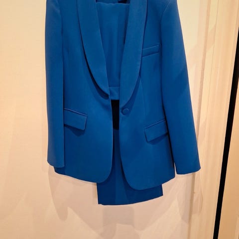 Jakkesæt, Blazer + bukser, Zara, str. S, Koksgrå, Hør, Næsten som ny, Blazer, str. S, nypris 700,-.
