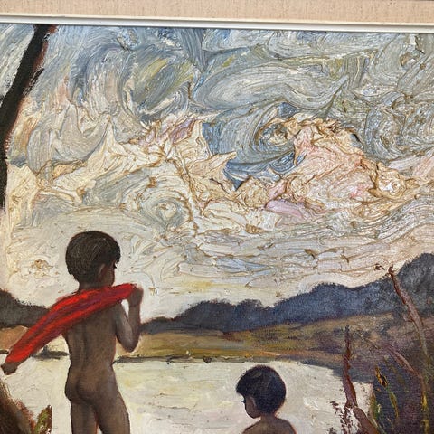 Kunstmaleri Olie på Lærred To Børn i Landskab