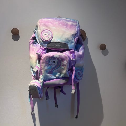Beckmann skoletaske brugt, Beckmann Classic 22, unicorn skoletaske, ergonomisk skoletaske, skoletaske bedst i test, brugt skoletaske til pige, Beckmann rygsæk unicorn, skoletaske uden regnslag, skoletaske med polstrede stropper, pastel skoletaske, skoletaske med madkasserum, Beckmann testvinder