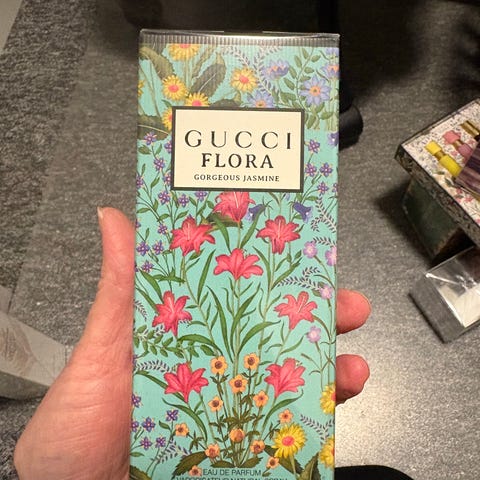 Gucci Flora Gorgeous Jasmine parfume i en elegant 50 ml flaske. Denne duft har en blomsteragtig aroma med noter af jasmin. Emballagen er dekoreret med et smukt blomstermotiv. Ideel til dem, der værdsætter en luksuriøs og forfriskende duft.