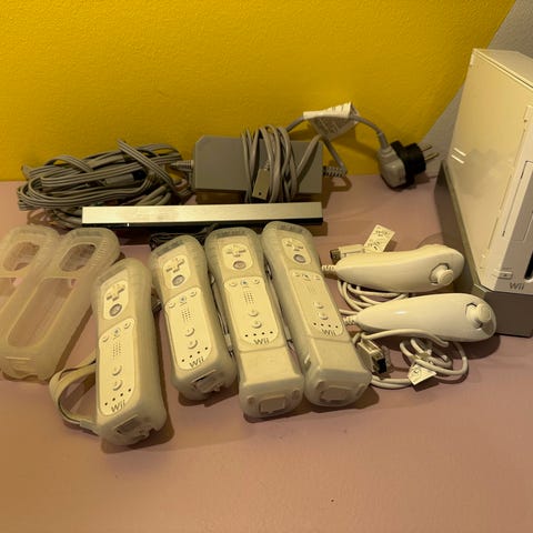 Sælger denne Nintendo Wii konsol i sort med 5 spil, to fjernbetjeninger og covers, orginale kabler og manualer.